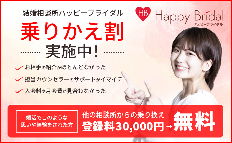 このようにお考えの方は結婚相談所ハッピーブライダルの無料相談へ是非一度お越しください。